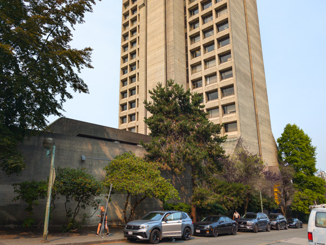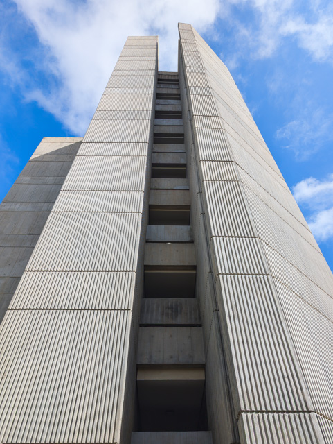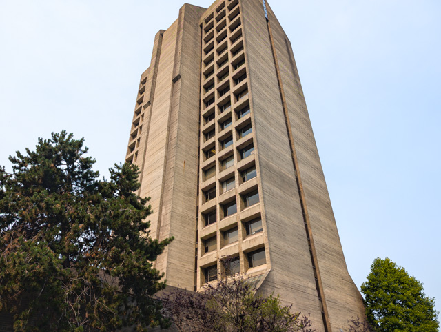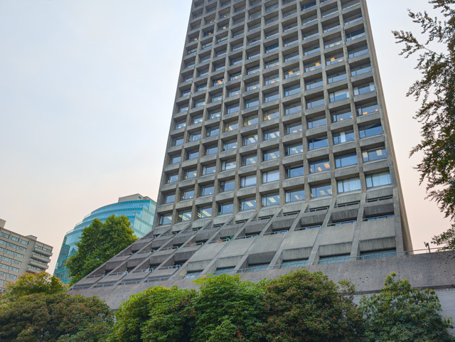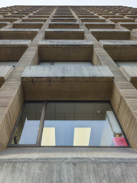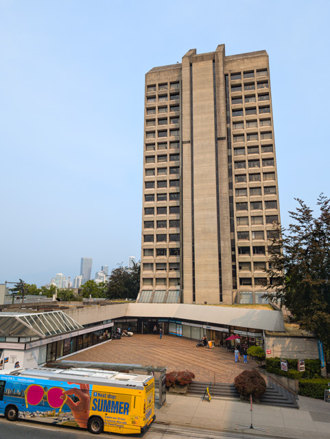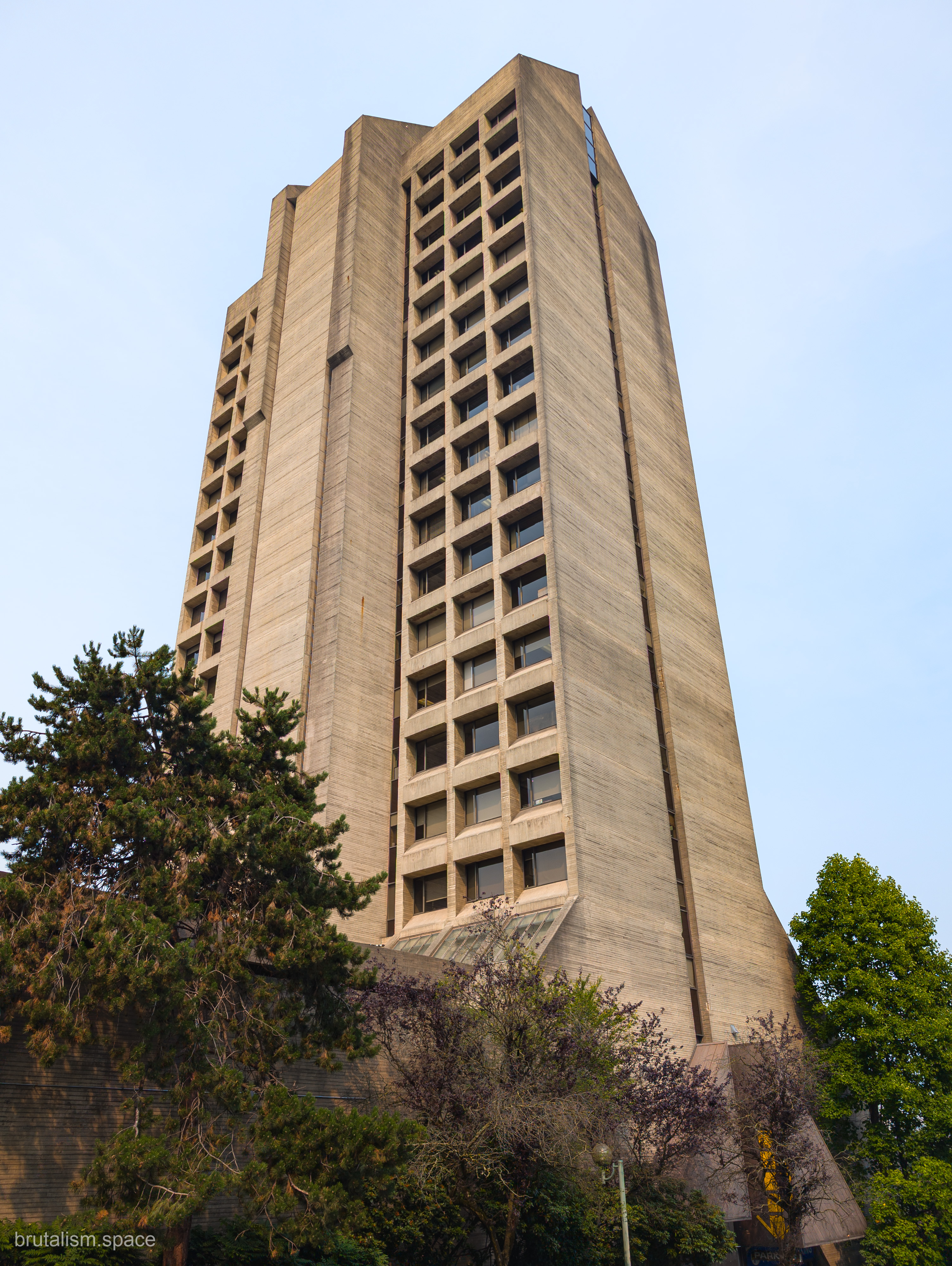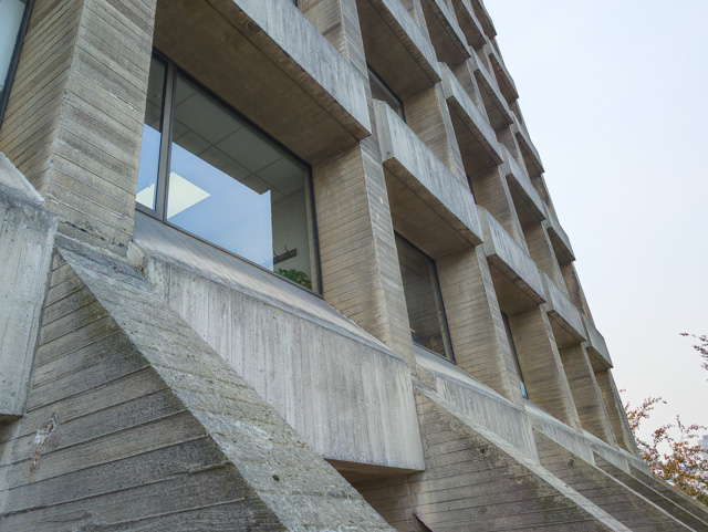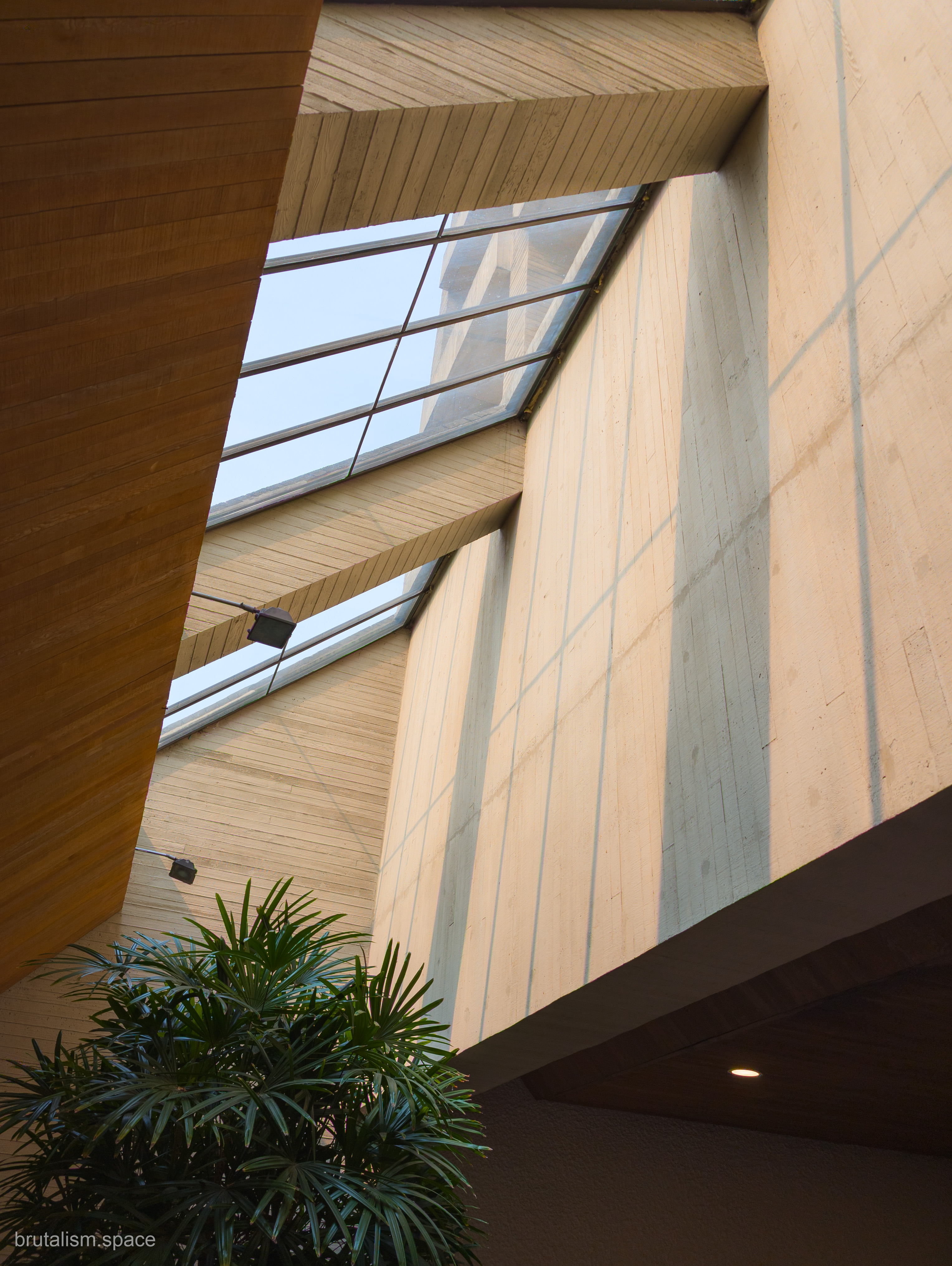 A hometown favourite of mine. The boardform on this building is really impressive, using a consistent pattern inside and out at truly monumental scale. According to his obituary, the architect was a Yugoslav partisan who fought the Nazis as a teenager, before moving to Vancouver in the early 50s.